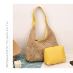 Stylish woven tote bag paired with a matching pouch. Lightweight, spacious, and perfect for casual outings or beach days. Available in 4 elegant color options.
