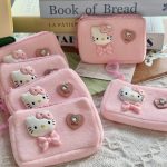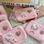 Adorable pink Hello Kitty coin purses with 3D character details and heart accents. Perfect for carrying small essentials in kawaii style.