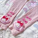 Stay cozy with these adorable Hello Kitty arm warmers featuring a charming pink bow and playful pompom accents. Perfect for adding a touch of kawaii to your outfit.
