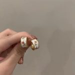These elegant hoop earrings feature a charming floral design with red flowers on a white background. They are the perfect accessory for adding a touch of vintage charm to your look.
