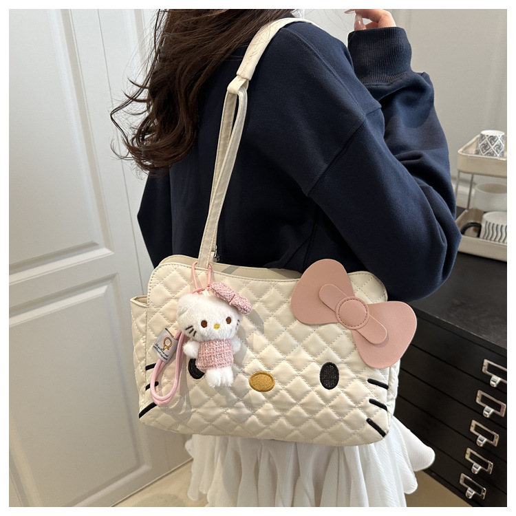 This adorable ring features a silver-toned band with a charming Hello Kitty design. The iconic character is depicted with her signature red bow and sweet expression, making this ring a perfect accessory for fans of the beloved feline.