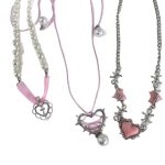 * Unique Design: Features a central pink heart surrounded by barbed wire details and two smaller heart accents on a classic silver link chain.
